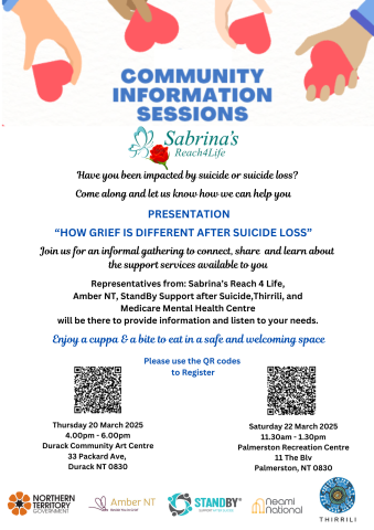 Our aim is to provide peer support to those bereaved by suicide, assist in the prevention of suicide in our community, particularly amongst adolescents, advocate for improvement in services to those in distress, refer those in need to appropriate services or professionals, reduce stigma of suicide by contributing to public awareness and understanding of mental ill health, and fundraise to support research, scholarships and local community initiatives.
