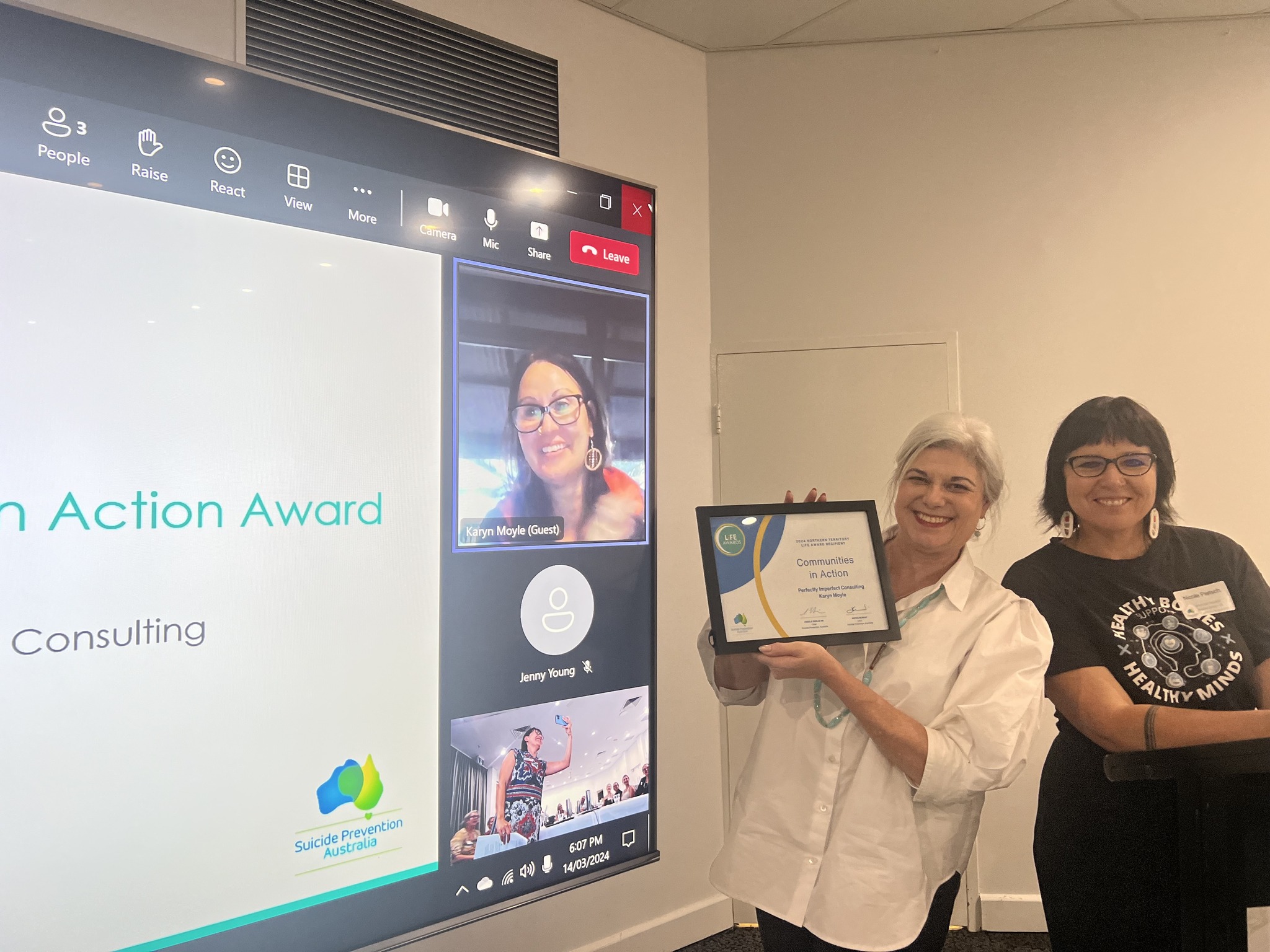 Thankyou SPA for coming to the NT to award these organisations for their recognition of the work they do in the suicide intervention/prevention space.